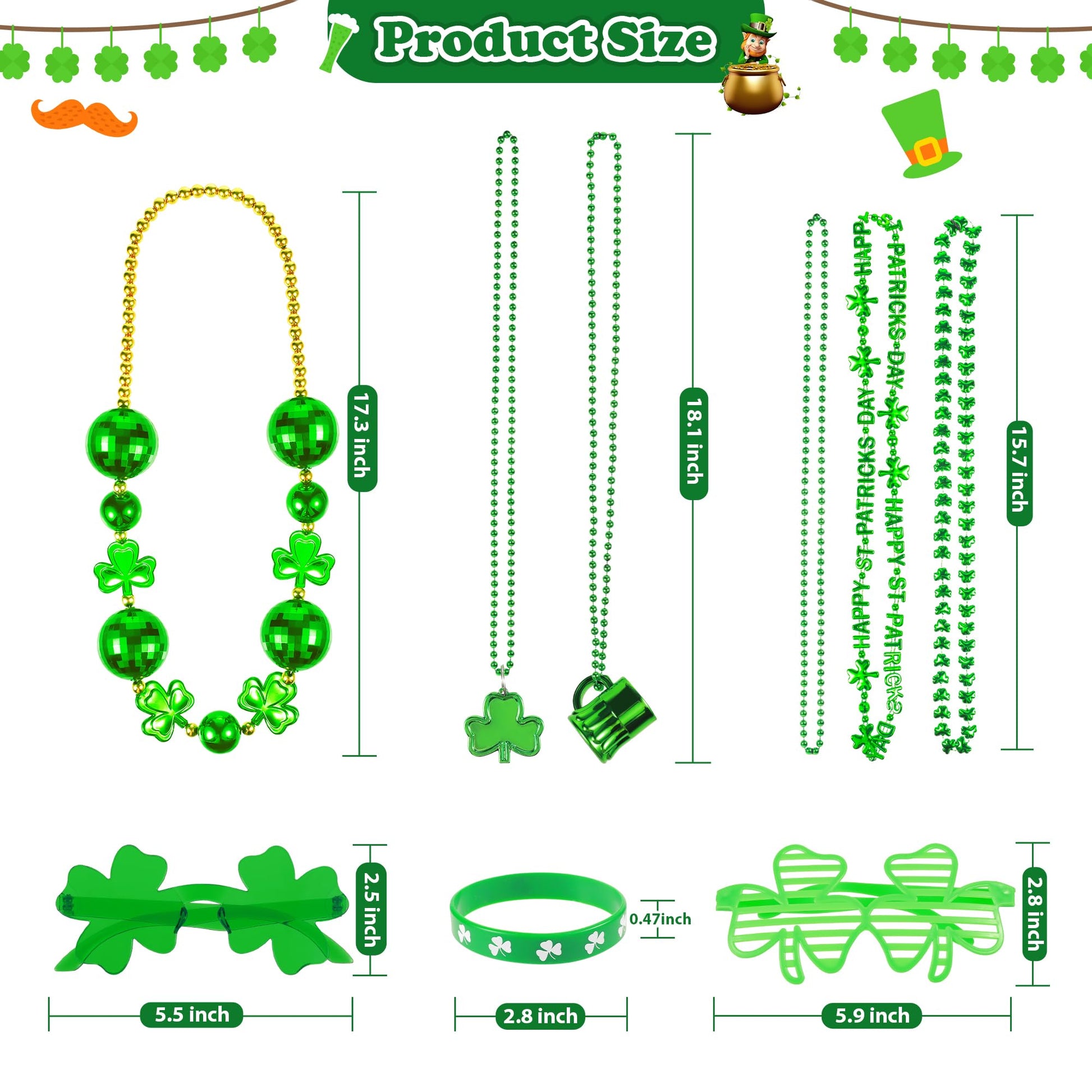 View compareZugm 50 Pcs St. Patricks Day Accessories, Dressing-Up St. Patricks Day Supplies Set With Green Shamrock Glasses, Shamrock Neckla