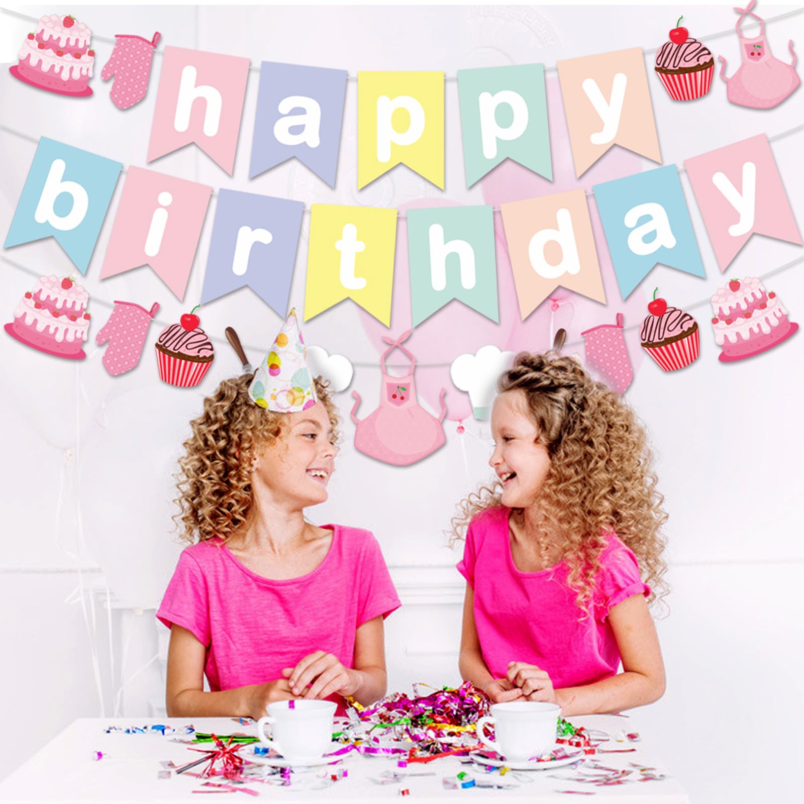 Zwiebeco Birthday Party Decoration Supplies Colorful Pink Happy Birthday Sign Banner Hanging Paper Bake Garland Bunting Banner F