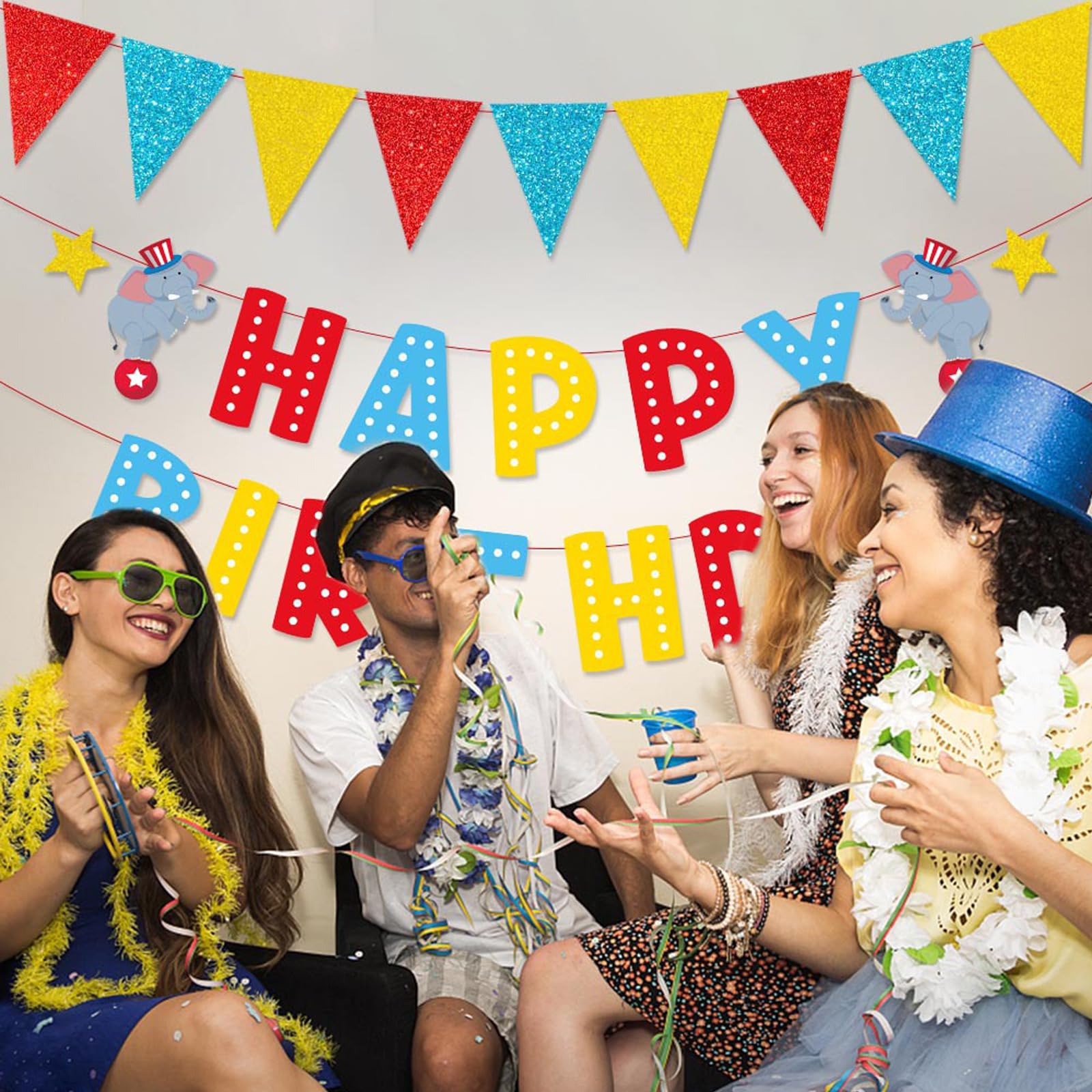 Zwiebeco Birthday Party Decoration Supplies Red Blue Yellow Happy Birthday Sign Banner Triangle Flags Pennant Banner Hanging Pap